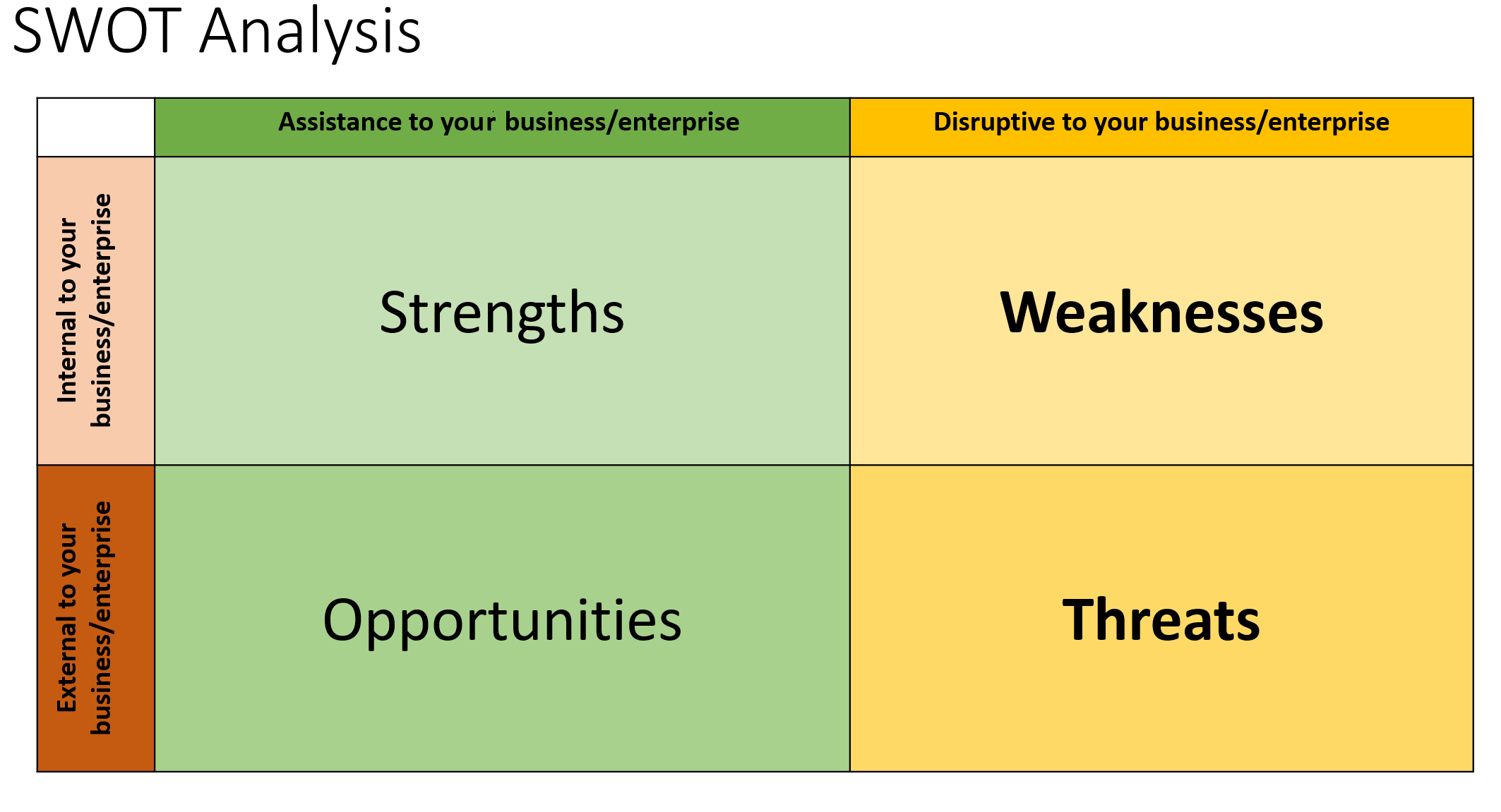 To explore SWOT Analysis further (and to find blank templates to use) please follow this link to a module on SWOT Analysis