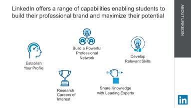 - Students know how to use LinkedIn to make connections with individuals, businesses, groups and alumni to research industries, get advice and apply for jobs.